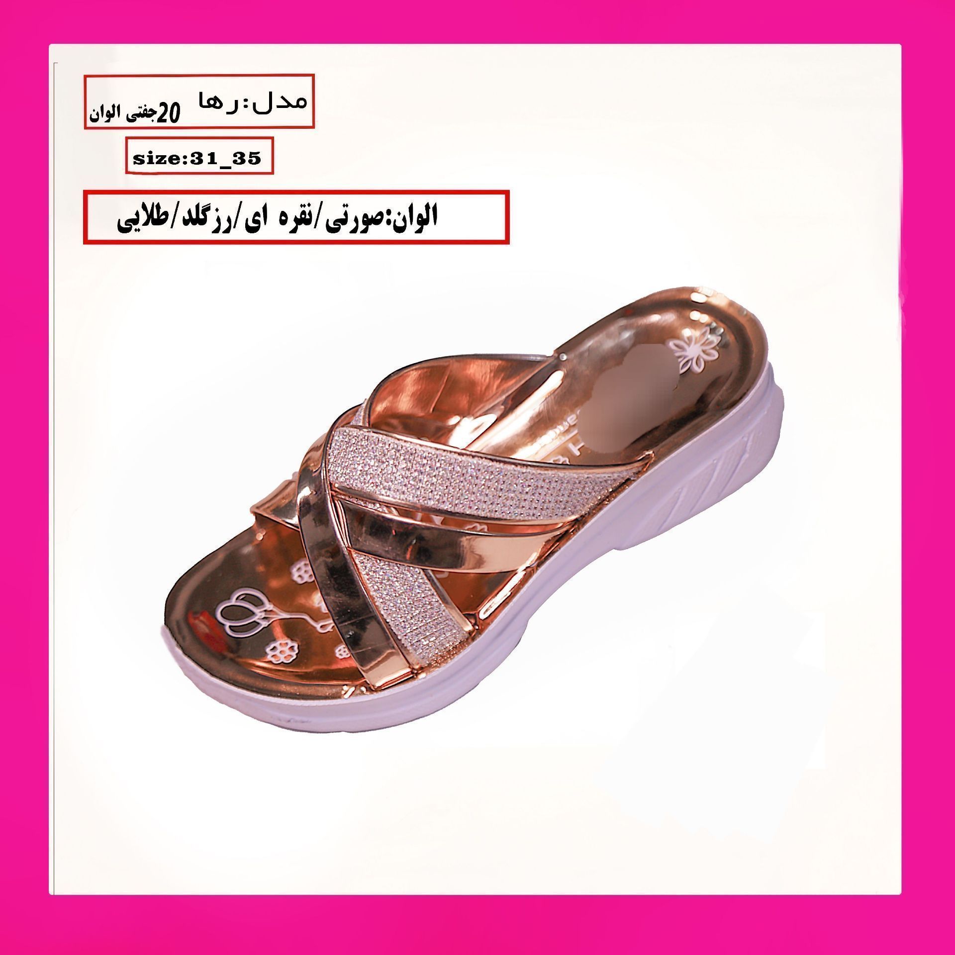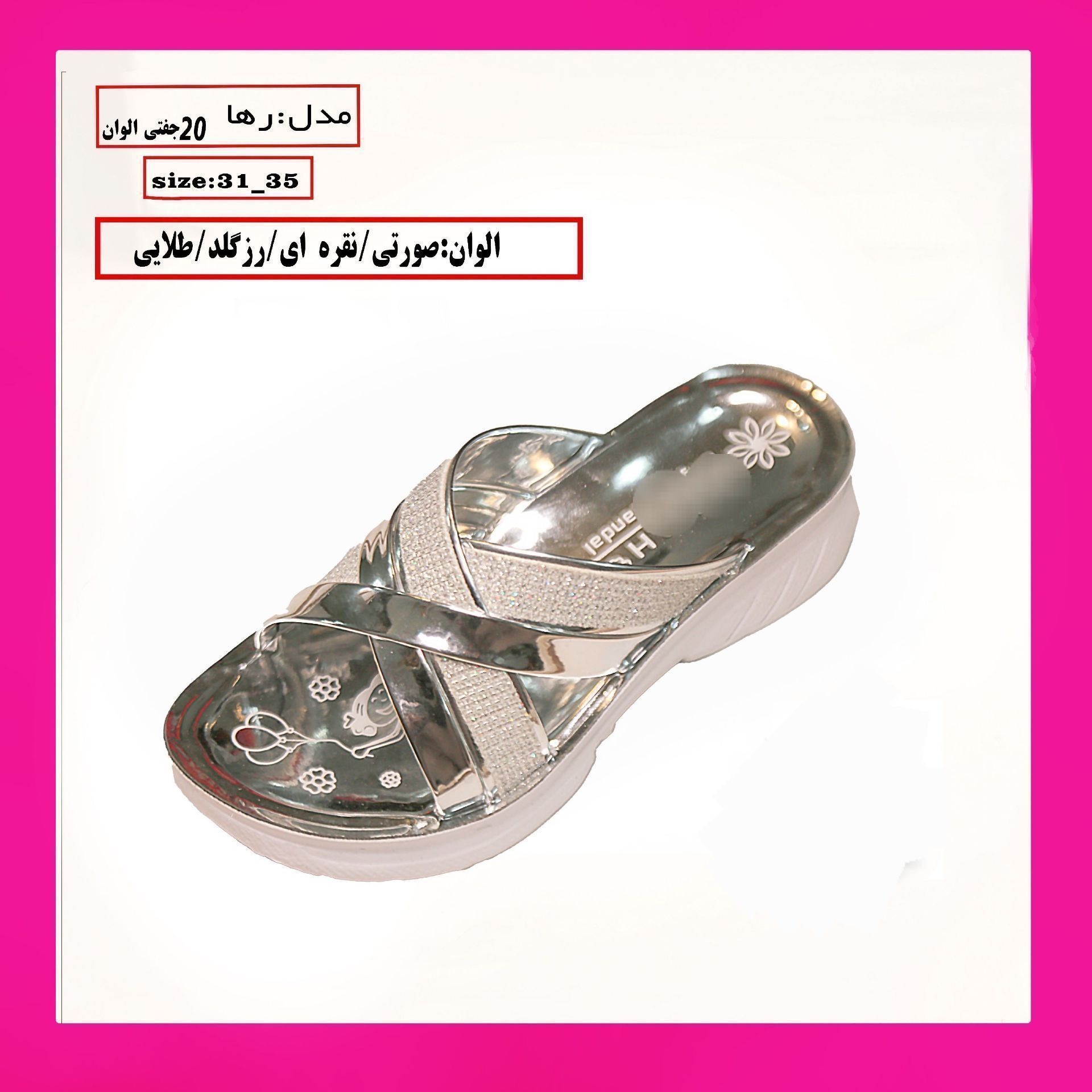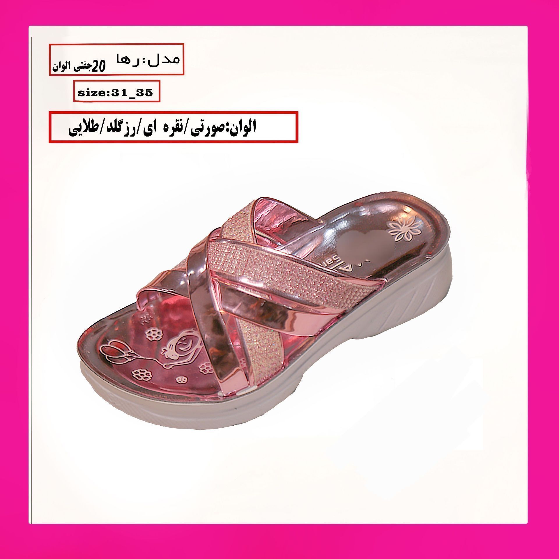 دمپایی دخترانه زیره تزريق سایزبندی ۳۱تا۳۵ قیمت ۱۸۵،۰۰۰تومان Posted on آگوست 23, 2023فوریه 19, 2026 by admin
